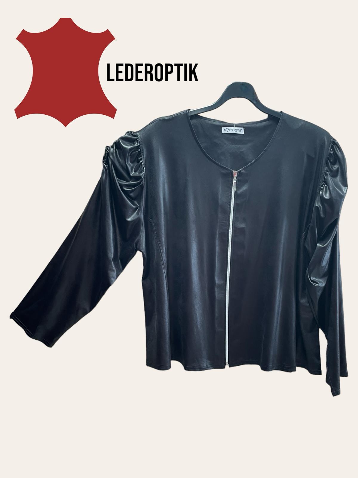 Magna Puffärmel Lederoptikjacke in schwarz 40-56